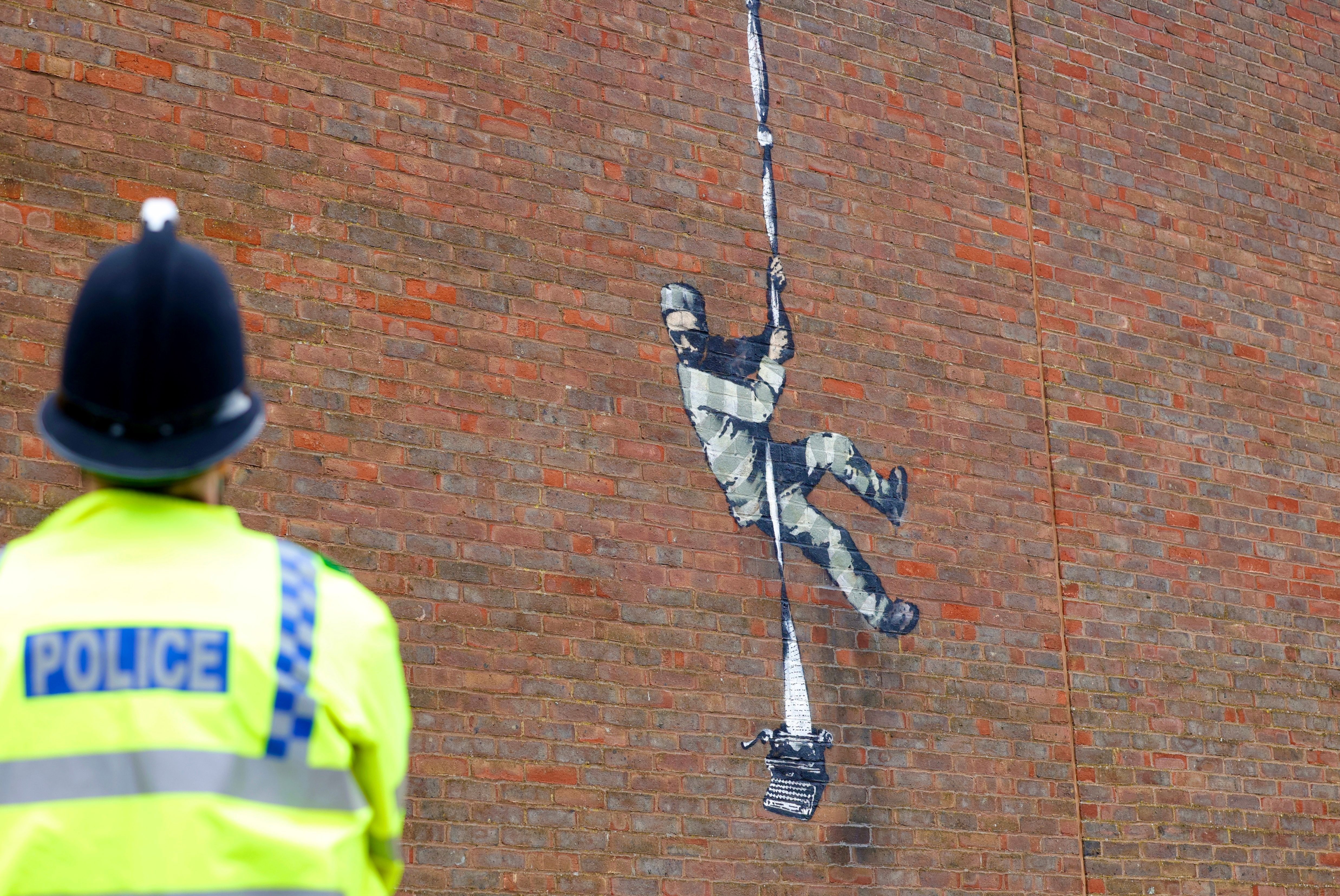ونشر بانكسي عبر حسابه على "إنستغرام" مقطع فيديو يظهر فيه وهو ينفذ الرسم. ويمثل الرسم سجينا يحاول الهرب باستخدام حبل مصنوع من ملاءات علق بعضها ببعض وربطت بآلة كاتبة.