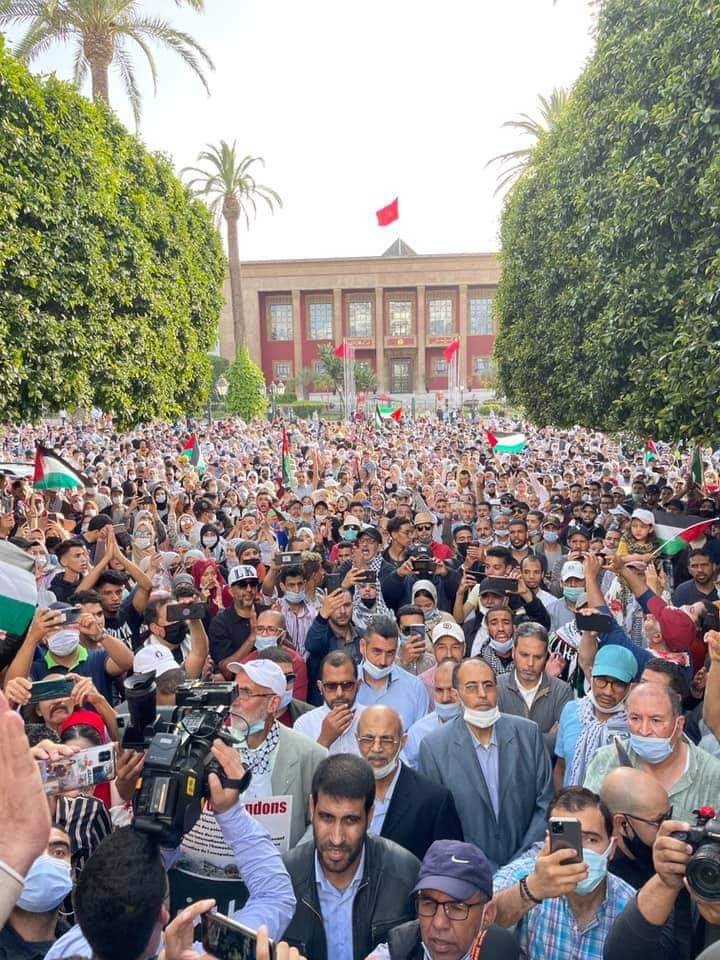 وفي العاصمة الرباط تجمع حوالى ألف متظاهر في وسط المدينة للتنديد بـ"الاعتداءات الإسرائيلية على الفلسطينيين" وبتطبيع العلاقات بين المملكة والدولة العبرية، بحسب ما أفاد مراسل لوكالة فرانس برس.
