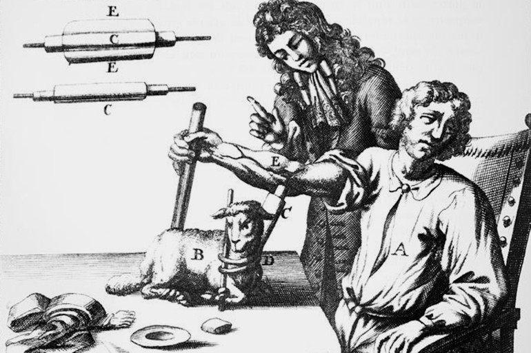 غير أن رجلا فرنسيا كان له رأيا آخر، إذ قام "جان بابتيست دينيس" في 15 يونيو 1667 بنقل دماء خروف إلى صبي يبلغ 15 عاما، وقالت حينها صحيفة لوبوان إن ذلك الرجل كان يلقي محاضرات علمية عن الفيزياء والرياضيات والطب، إلا أنه لا وجود لأي شهادات علمية تدل على تحصيله الأكاديمي الحقيقي.