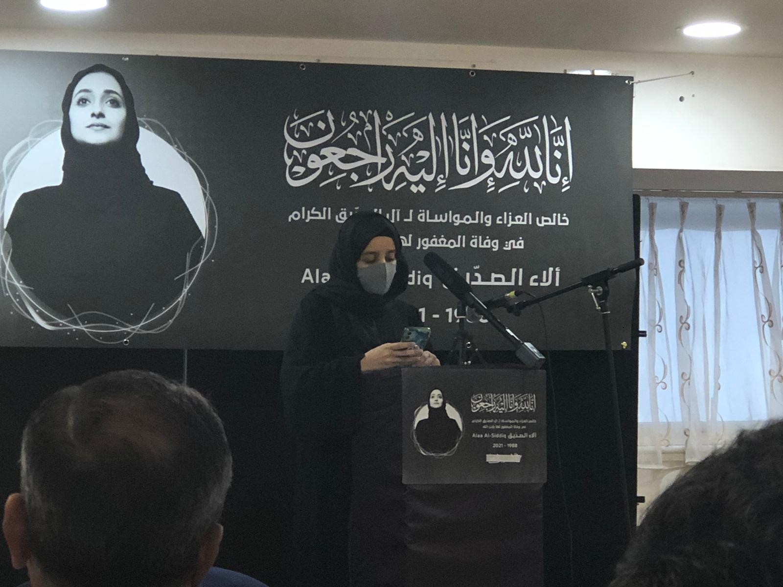 أٌبِّنت آلاء الصديق، الشابة المناضلة والمعارضة السياسية الإماراتية، رئيسة منظمة القسط لحقوق الانسان، اليوم الاحد، 27 يونيو 2021، بالعاصمة البريطانية لندن، بينما كان جثمانها يوارى الثرى في العاصمة القطرية الدوجة.