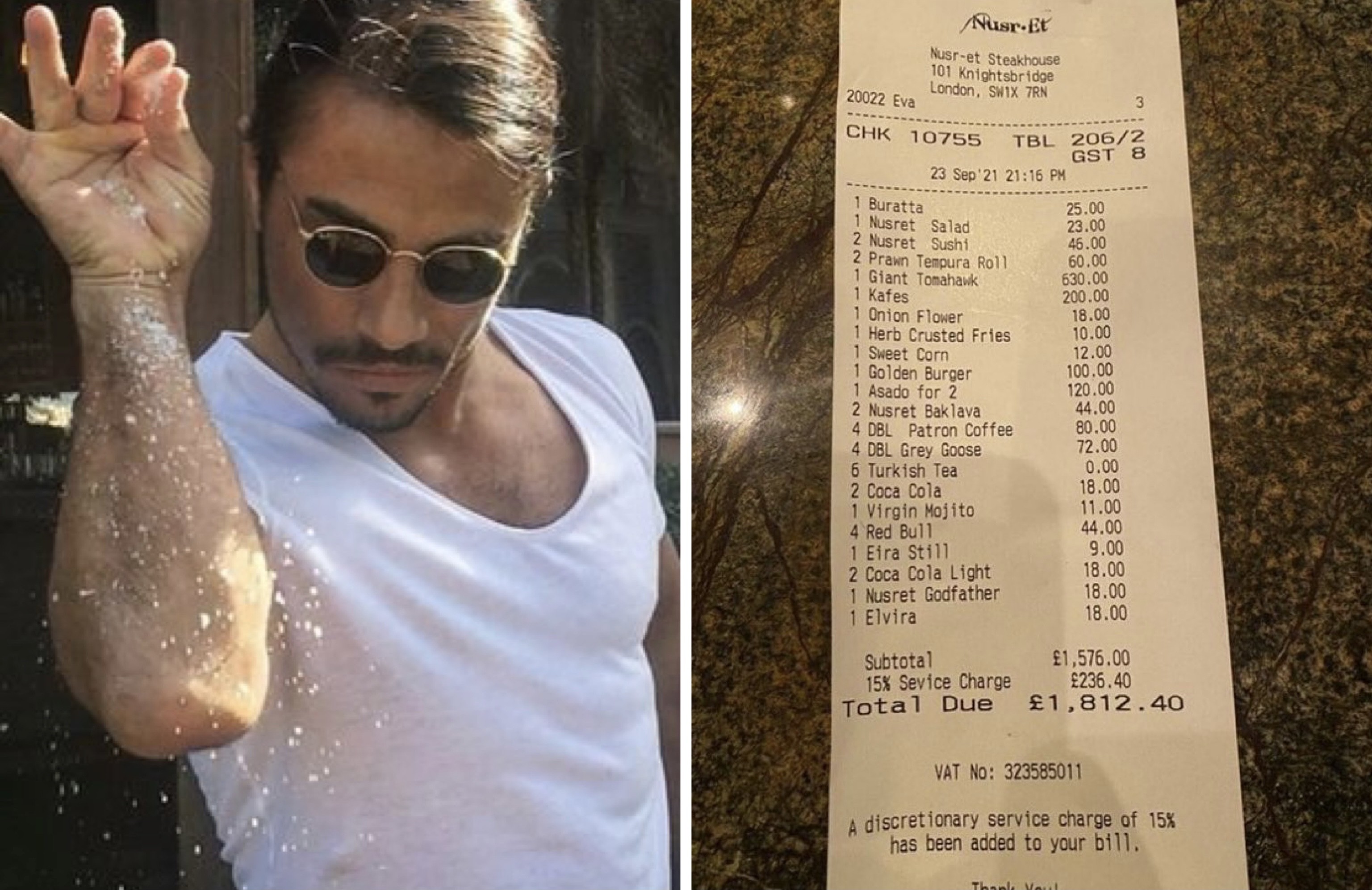 وبحسب الفاتورة المنشورة فإن شريحة لحم توماهوك العملاقة ستكلفك 630 جنيهًا إسترلينيًا، والبرغر الذهبي 100 جنيه إسترليني. وغرد العميل الذي نشر صورة الفاتورة قائلاً: "من الأرخص أن تسافر إلى تركيا وتتناول الطعام في مطعم Salt Bae التركي بدلاً من الذهاب إلى مطعم London one. 9 لدفع مبالغ طائلة".
