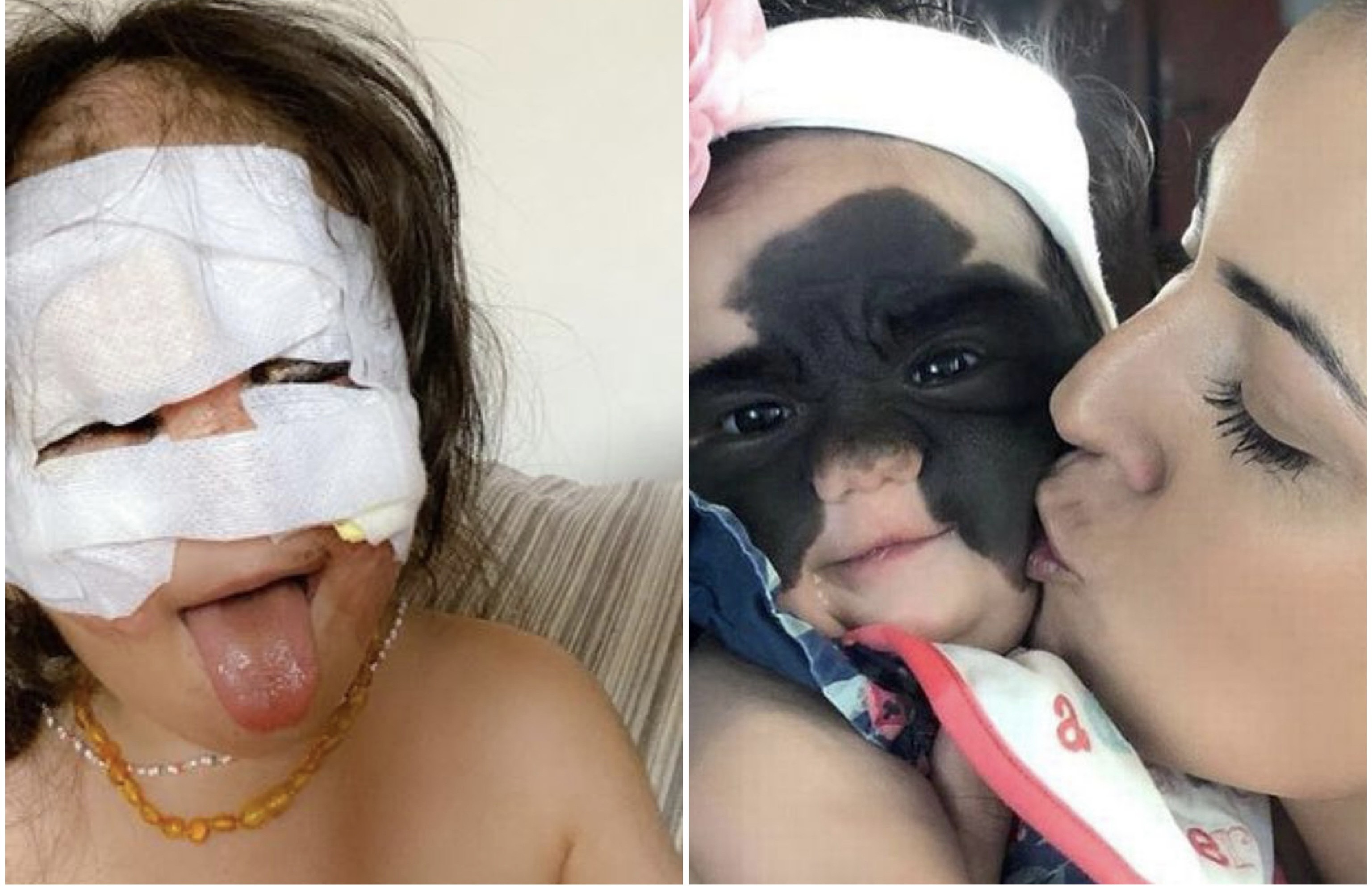 أجرت الطفلة الأمريكية "لونا تافاريس-فينر" البالغة من العمر عامين عملية لإزالة وحمة ضخمة كانت تغطي أنفها وجفونها. وكانت داكنة اللون وتشبه قناع باتمان.