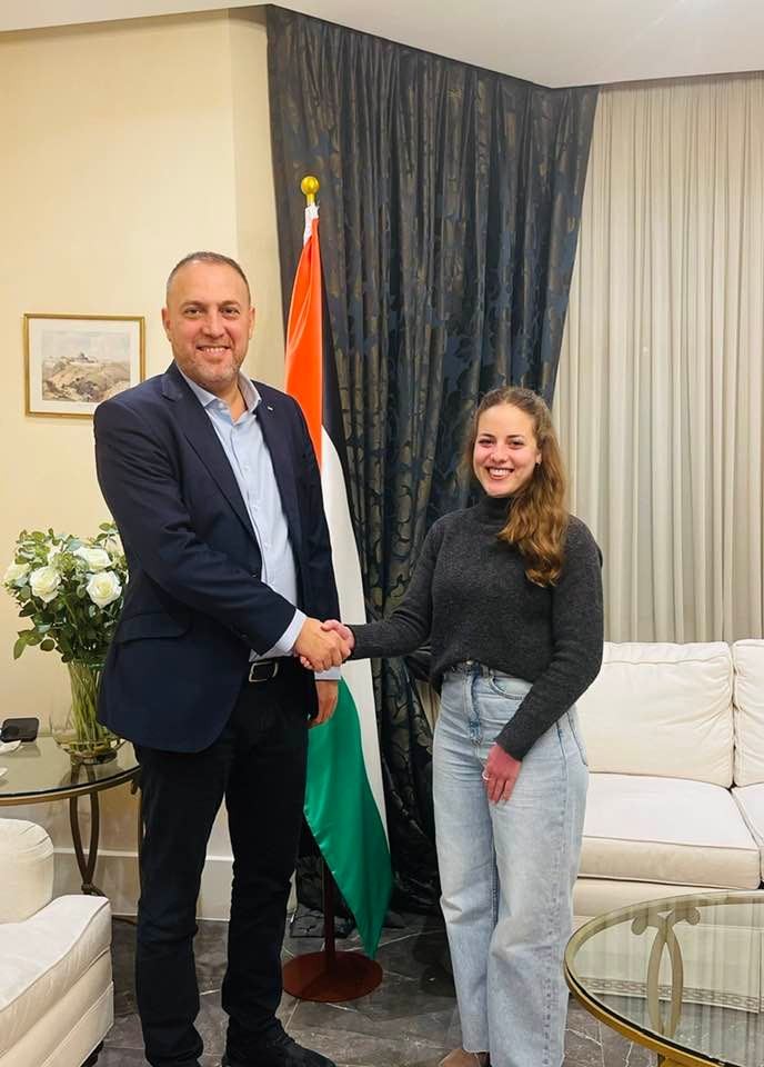 ونشر زملط صورا من زيارة الرفاعي له في مكتبه قبل عودتها إلى فلسطين، متمنيا لها أن تكون "جزء من بناء جيش نظامي يحمي حدود دولة حرة وعصرية." ووصف زملط بلقيس وجيلها بأنهم "أمراء فلسطين ومستقبلها".