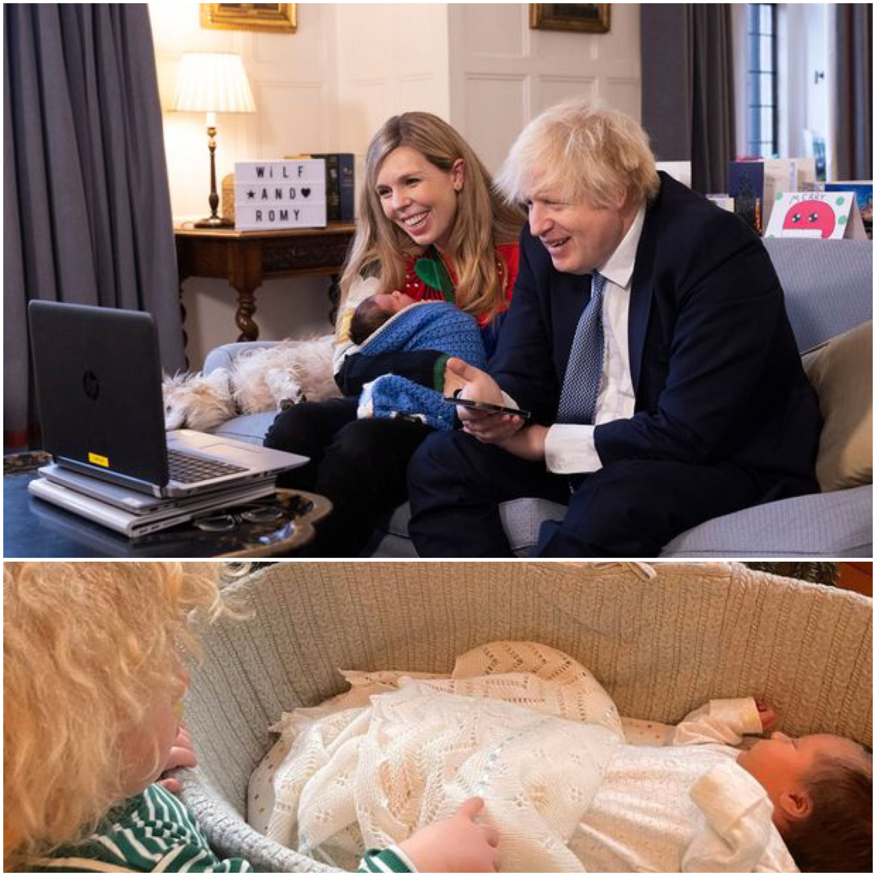 أظهرت صور عيد الميلاد الجديدة لرئيس الوزراء البريطاني "بوريس جونسون" وزوجته "كاري جونسون" رفقة مولودهما الجديد وهما يجيبان على مكالمات الفيديو.