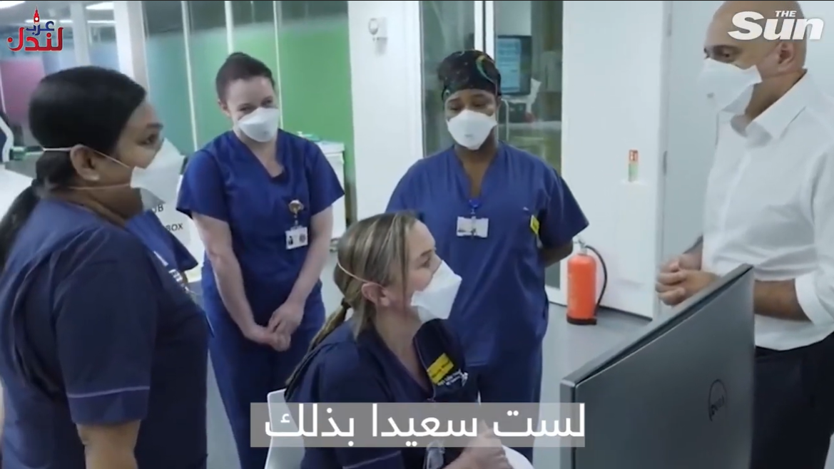 إليكم أول المقاطع المترجمة والذي يعرض لقاء وزير الصحة، ساجد جاويد بالعاملين في قسم العناية المركزة في مستشفى "كينغز كوليدج".