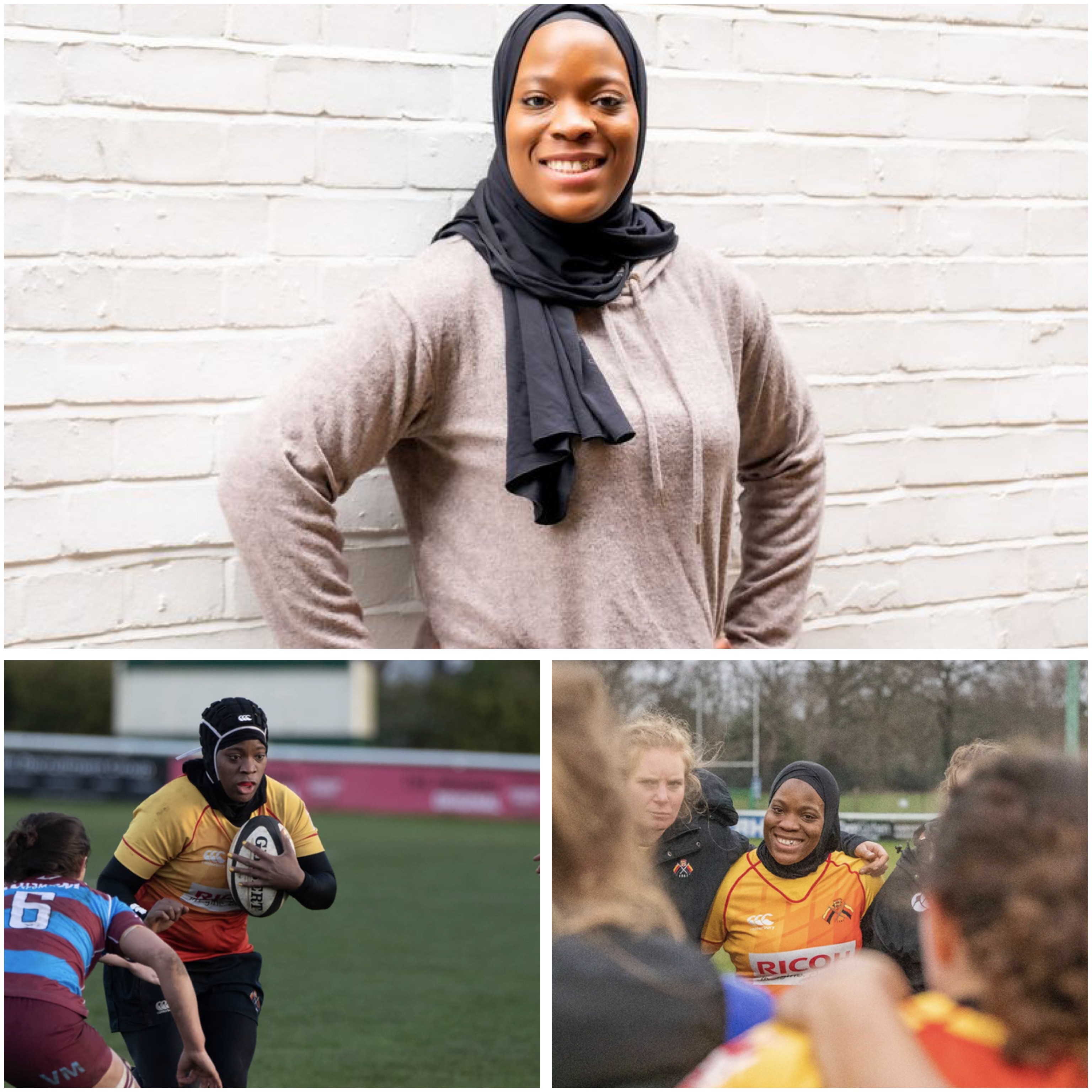 عبرت زينب أليما، البالغة من العمر 29 عامًا، التي تلعب في نادي ريتشموند للرغبي عن فخرها بكونها أول امرأة مسلمة سوداء ترتدي الحجاب وتلعب هذه الرياضة.