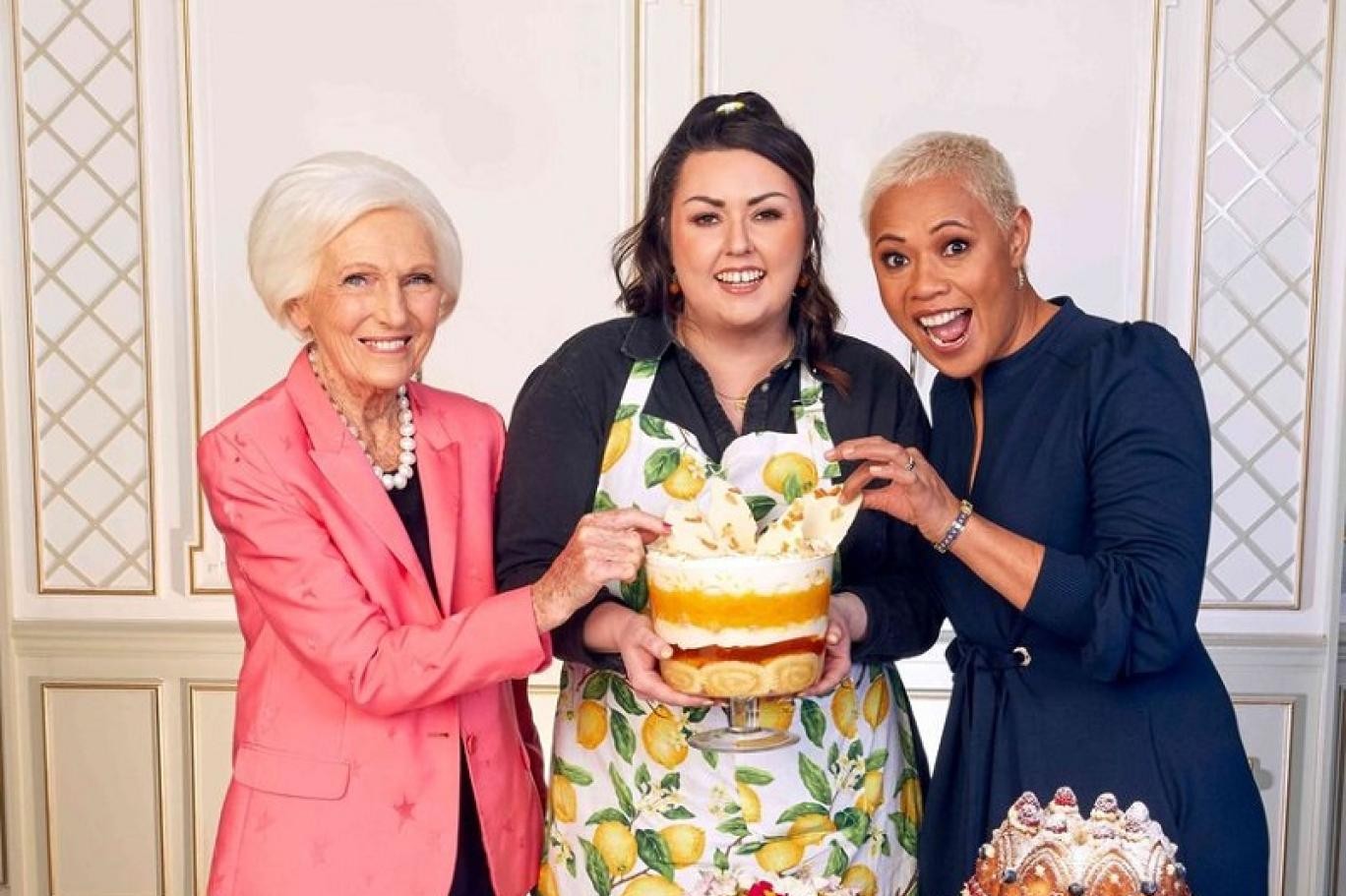 فاز قالب حلوى بالليمون مطعم ببسكويت الأماريتي مساء الخميس بمسابقة بودينغ اليوبيل البلاتيني للملكة إليزابيث الثانية، احتفالا بمرور 70 عاما على توليها العرش البريطاني.