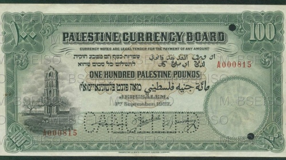 وبحسب صحف ووكالات أجنبية عثر، بول وايمان، المتطوع لدى منظمة أوكسفام للأعمال الخيرية في فرع برينتوود في مدينة إسيكس على ورقة نقدية بقيمة 100 جنيه فلسطيني. وقيل إن الورقة النقدية كانت صادرة لمسؤولين بريطانيين رفيعي المستوى في فلسطين عام 1927.