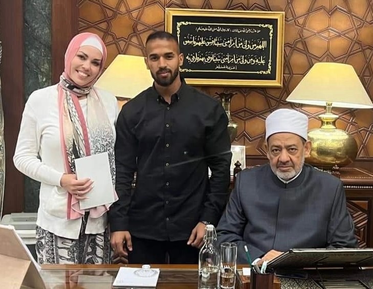 بالصور: بريطانية متزوجة من مصري تشهر إسلامها بحضور شيخ الأزهر