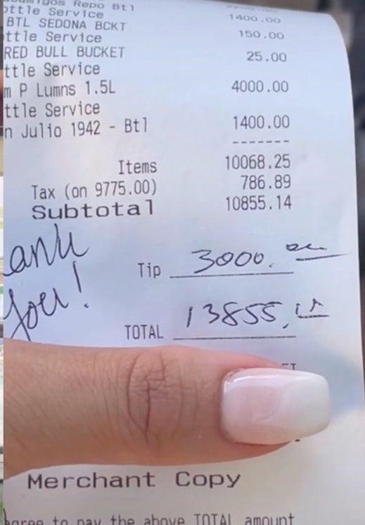 انتشرت مقاطع فيديو لنادلة متخصصة في تقديم زجاجات المشروبات الروحية على منصة "تيك توك" بعد أن كشفت الأخيرة عن حجم الإكراميات التي تحصل عليها خلال يوم عمل واحد.