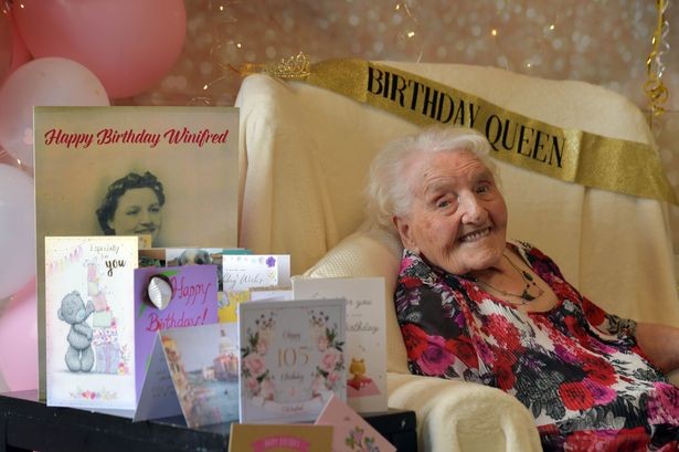 احتفلت البريطانية المعمرة "وينيفريد توماس" بعيد ميلادها الـ 105، في دار الرعاية، مع أقربائها يوم أمس الثلاثاء.