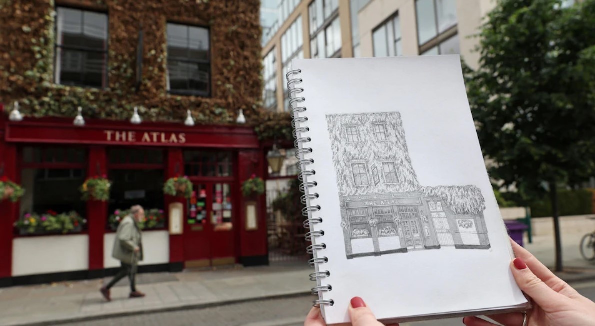 تضيف ليديا وود، وهي تجلس مقابل حانة "ذي أطلس" غرب لندن، لمساتها الخاصة على رسمها وتتوقف بانتظام لشحذ قلمها الرصاص... فهذه الرسامة صاحبة السنوات الثماني والعشرين وضعت هدفا تطمح من خلاله إلى رسم حانات العاصمة البريطانية البالغ عددها 3500.