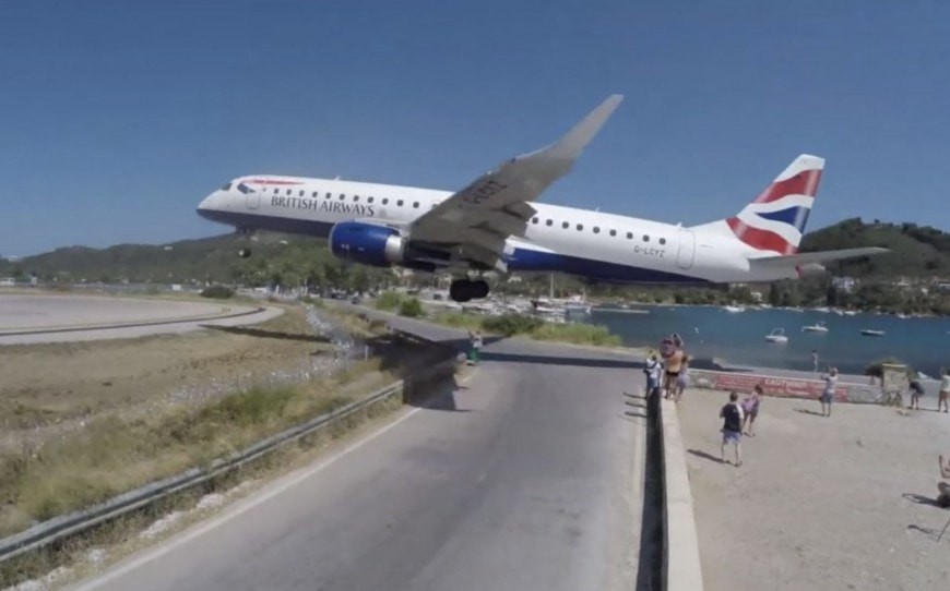 وثق عدد من السياح في جزيرة سكياثوس اليونانية، لحظة هبوط طائرة تابعة للخطوط الجوية البريطانية على بعد أمتار قليلة فوق رؤوسهم.