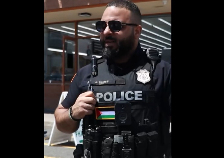 أديب قنيص .. شرطي أميركي من أصل فلسطيني يضع علم فلسطين على الزي الرسمي (فيديو)