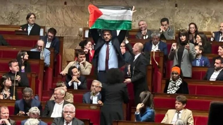 علّق البرلمان الفرنسي عضوية سيباستيان ديلوغو، وهو نائب يساري متطرف بسبب رفعه العالم الفلسطيني داخل البرلمان يوم الثلاثاء.