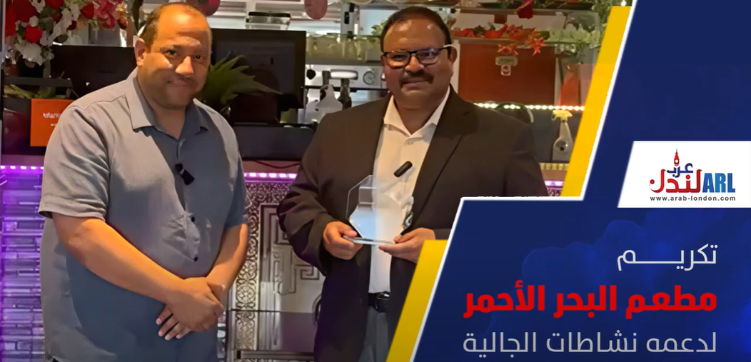 كرّمت منصة عرب لندن ومؤتمر الجالية في بريطانيا مطعم البحر الأحمر تقديرًا لجهوده في دعم مؤتمر الجالية العربية في بريطانيا وكافة نشاطات الجالية العربية.