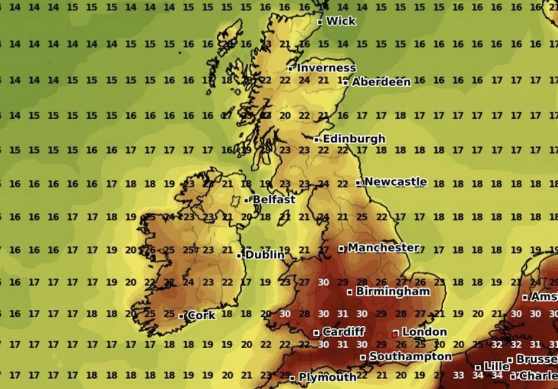 أعلنت هيئة الأرصاد الجوية البريطانية عن توقعات بارتفاع ملحوظ في درجات الحرارة، اعتبارًا من نهاية الأسبوع المقبل وحتى أواخر أغسطس، مع احتمال بلوغها 37 درجة مئوية في بعض المناطق مثل ميدلاندز، و34 درجة في كل من لندن وساوثهامبتون، وفقًا لخرائط الطقس للفترة من 9 إلى 12 أغسطس.