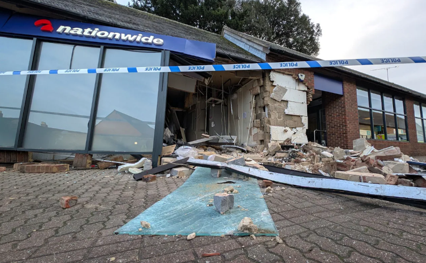 حطّم سارق جدار أحد فروع بنك "نايشن وايد" Nationwide في بلدة تاوستر بمقاطعة نورثهامبتونشاير، بعد أن استخدم رافعة شوكية لاقتلاع جهاز صراف آلي من واجهة المبنى في الساعات الأولى من صباح الجمعة، فيما لا يزال المشتبه به طليقًا.