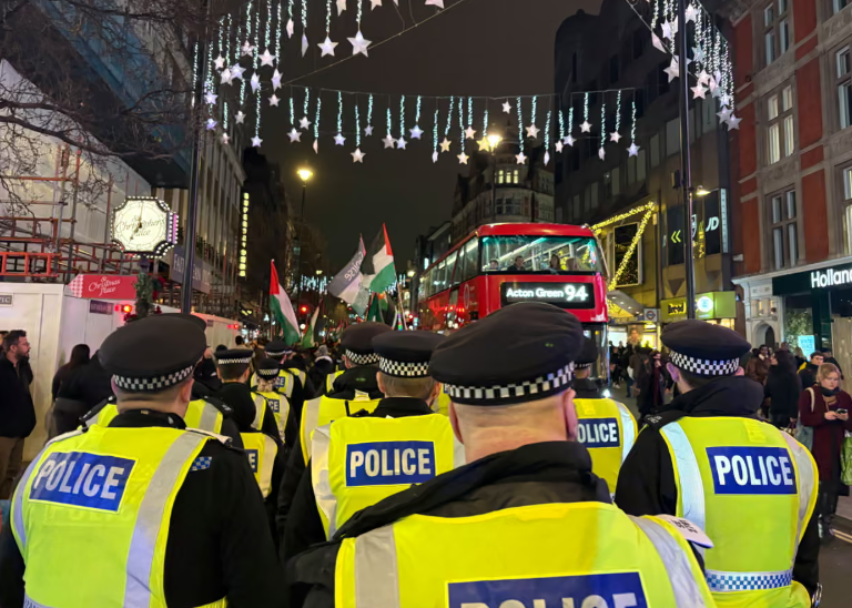 وفي نوفمبر/تشرين الثاني، أجبرت الشرطة ائتلاف فلسطين على تغيير مسار مسيرته قبل ثلاثة أيام من الحدث، مستشهدة بالتأثير التراكمي على الشركات خلال عطلة "الجمعة السوداء"، رغم أن المسار لم يُستخدم لأكثر من عام. واعتبر المنظمون هذا القرار "عامل تثبيط" تسبب في ارتباك وتعقيد تنظيم الوقفات.