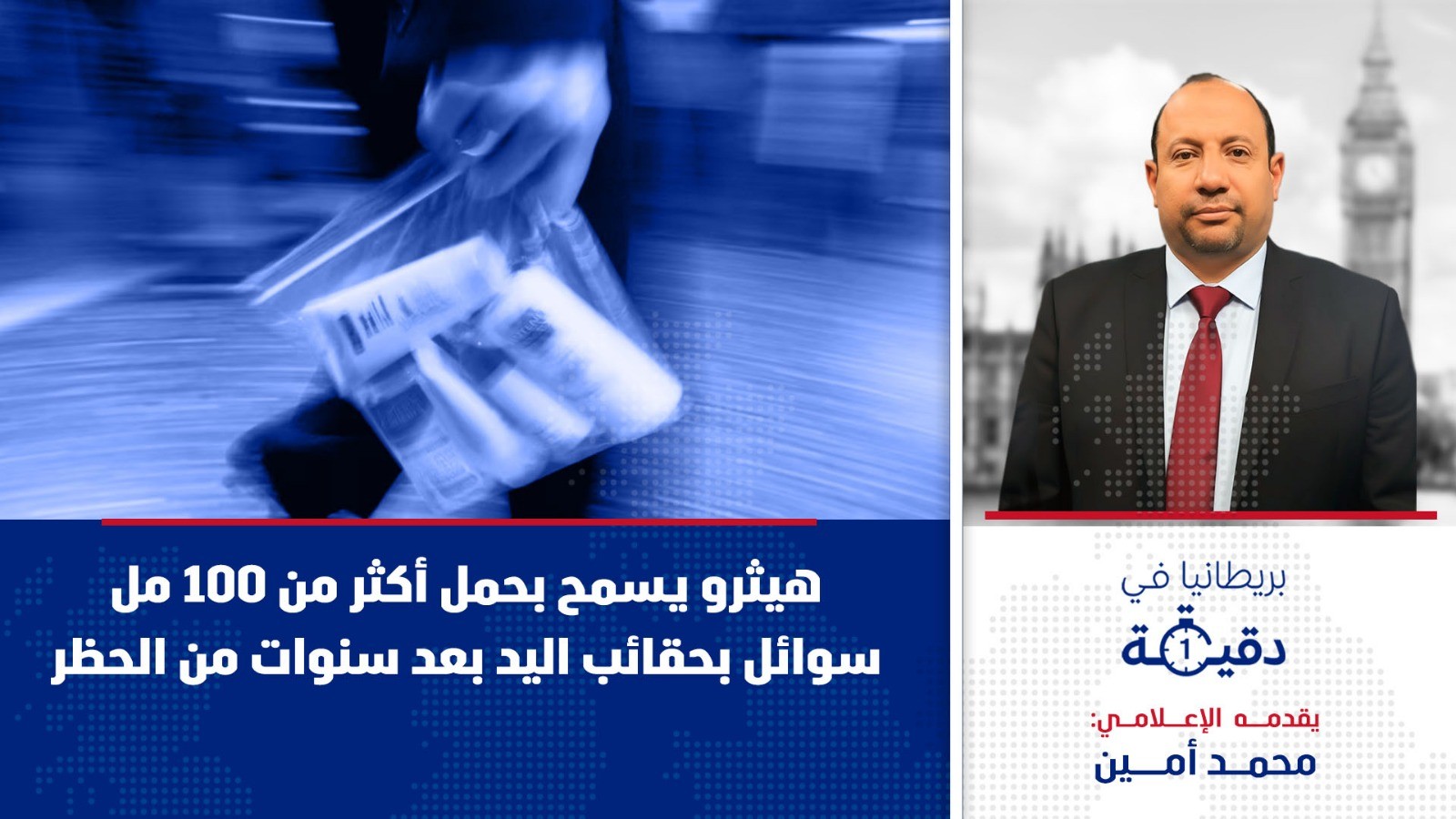 فيديو/ بريطانيا في دقيقة: هيثرو يسمح بحمل أكثر من 100مل سوائل بحقائب اليد بعد سنوات من الحظر