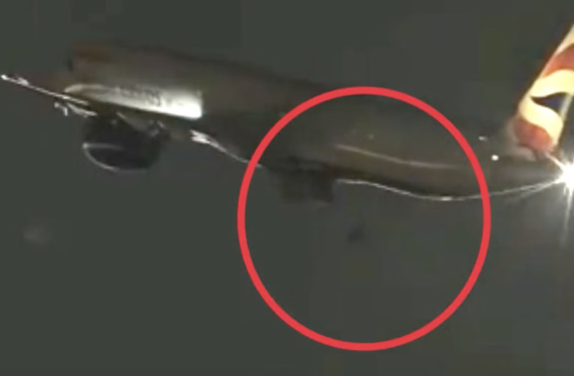 وأظهرت اللقطات انبعاث شرارات من الترس الخلفي الأيمن للطائرة خلال الإقلاع من المدرج 26R نحو الساعة التاسعة مساءً بالتوقيت المحلي (5:05 صباحًا بتوقيت UTC)، قبل أن تنفصل العجلة وتسقط داخل نطاق المطار.