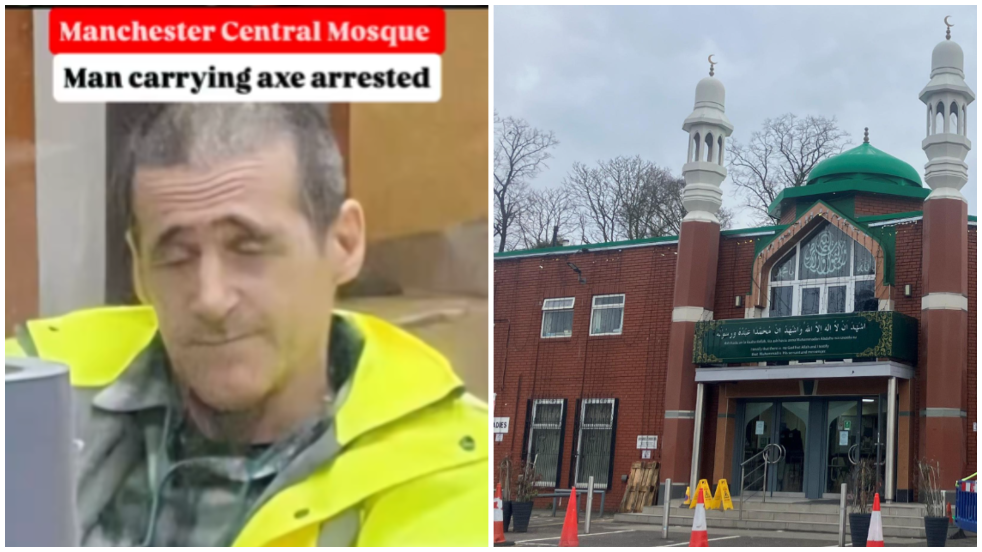 ألقت شرطة مانشستر الكبرى القبض على رجل في الأربعينيات من عمره بعد أن دخل مسجد مانشستر المركزي في منطقة فيكتوريا بارك مساء الثلاثاء وهو يحمل حقيبة تحتوي على أسلحة بينها فأس وسكين ومطرقة، وذلك أثناء أداء المصلين لصلاة التراويح في شهر رمضان. وأكدت السلطات أن الواقعة لا تُعامل كحادث إرهابي، فيما لم تُسجل أي إصابات.