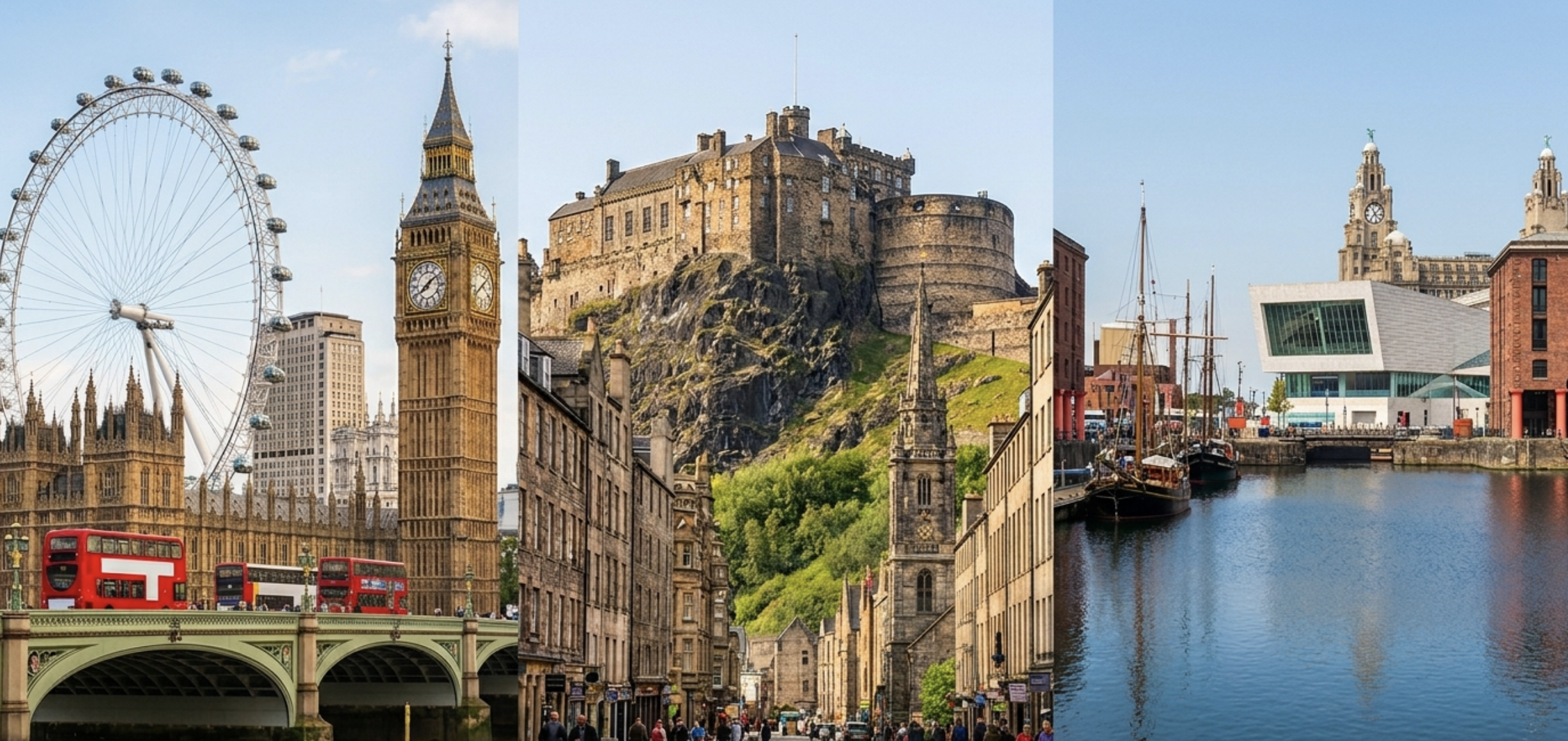 تواصل بريطانيا جذب المسافرين الباحثين عن وجهة تجمع بين التاريخ وسهولة الحركة وتنوع الإقامة، من لندن وإدنبرة إلى ليفربول ومانشستر. وتبرز مناطق مثل Westminster وCovent Garden وSouth Bank في لندن، وOld Town في إدنبرة، كخيارات مفضلة لمن يريد البقاء قريبًا من أبرز المعالم والأنشطة.