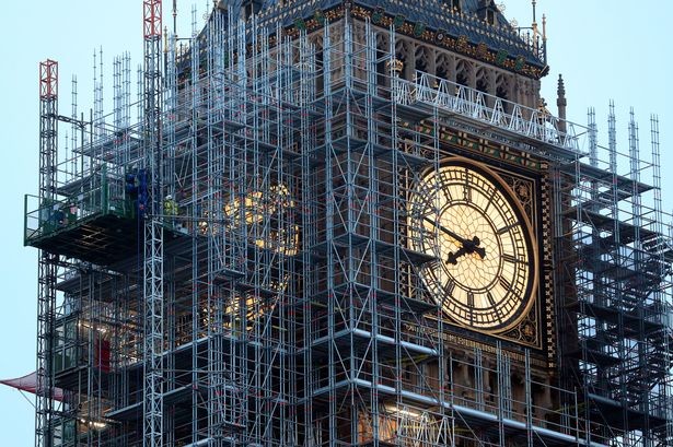 يزين مبنى "بيج بن" قصر "ويستمينستر" الذي صنفته "اليونسكو" ضمن التراث العالمي، ويجتمع فيه أعضاء مجلسي العموم واللوردات.