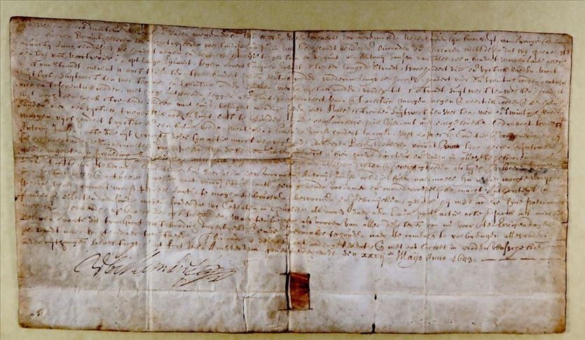 الوثيقة اشترتها "جمعية التاريخ" في بروكلين (إحدى المناطق الخمسة المكونة لنيويورك) بـ27 ألفا و500 دولار، خلال مزاد علني جرى تنظيمه مؤخرا في "دار كريستيز" للمزادات. وهي عبارة عن عقد ملكية عقارية يرجع تاريخها للقرن السابع عشر الميلادي، وتحتوي على معلومات عن شخص يدعى "أنتوني يانسن فان سالي"، والذي كان معروفا باسم "أنتوني التركي".