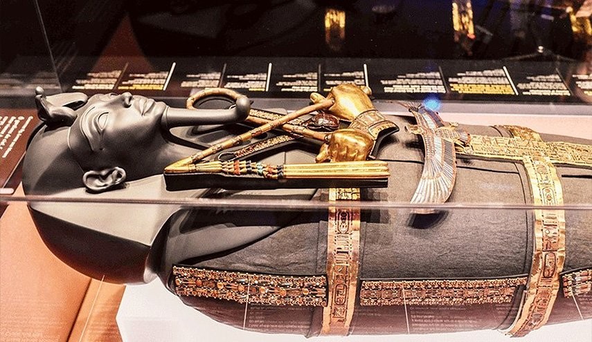اعتقد المصريون القدماء أن الإنسان يموت مرتين؛ مرة بوفاته، والثانية بوفاة آخر شخص يذكر اسمه".. بهذه الجملة يستقبل معرض مقتنيات الملك توت عنخ آمون الزائرين، ليدلل على خلود الملك الذي يردد العالم بأسره اسمه حتى يومنا هذا ولعقود قادمة من الزمن، ليترك الزائر متلهفا لمشاهدة ما هو موجود بالداخل من تاريخ.