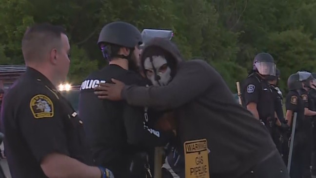 ضجت مواقع التواصل الاجتماعي بفيديو مصور لشرطي يخلع معدات مكافحة الشغب ويلقى خطابا فحواه أنه متضامن مع المتظاهرين في ميشيغان.