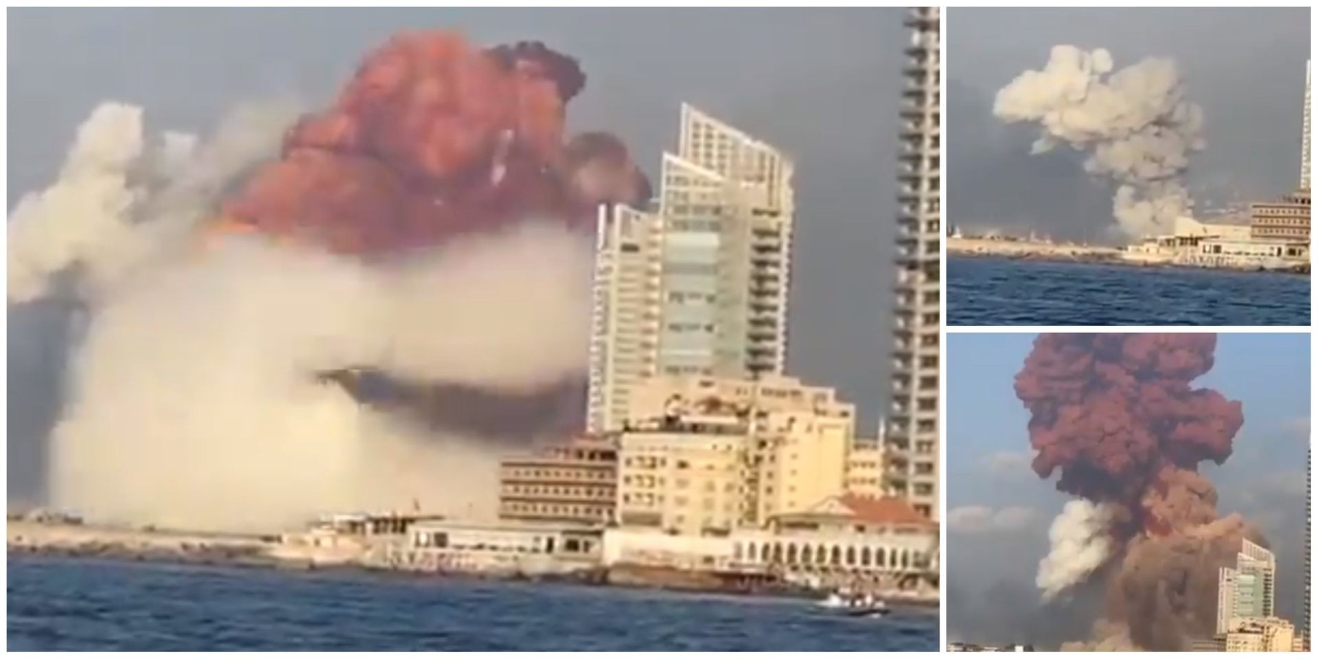 وهزت انفجارات ضخمة مرفأ بيروت مما أدى إلى دمار جزء كبير من الميناء وتدمير مبان وتهشيم نوافذ وأبواب مع تصاعد سحابة على شكل فطر عملاقة فوق العاصمة.