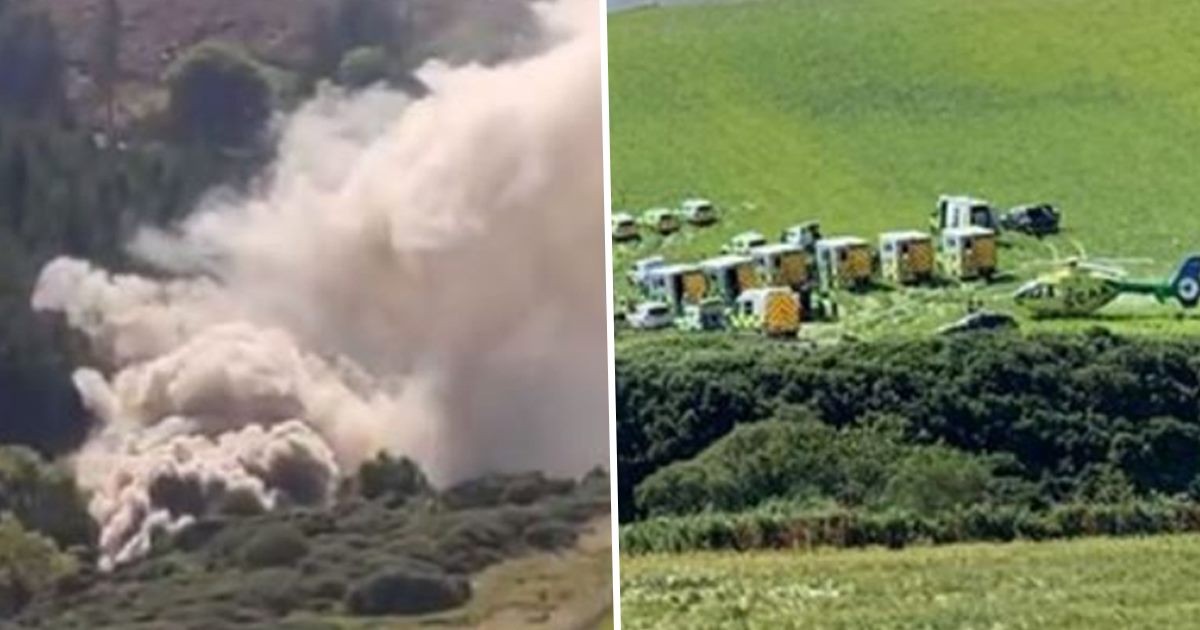 وصعدت سحب كبيرة من الدخان من مكان الحادث الذي وقع في منطقة جبلية هرعت إليها سيارات الإسعاف ومروحية، بحسب صور بثتها هيئة الإذاعة البريطانية، حيث لم يكن من الممكن رؤية القطار نفسه.