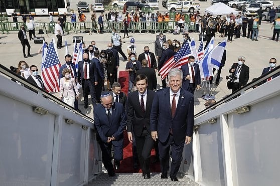 وقال كوشنر عند نزوله من الطائرة التي أقل ت وفدا إسرائيليا وأميركيا "هذه أول مرة يحدث فيها هذا الأمر وأود أن أشكر المملكة العربية السعودية لجعل ذلك ممكنا".