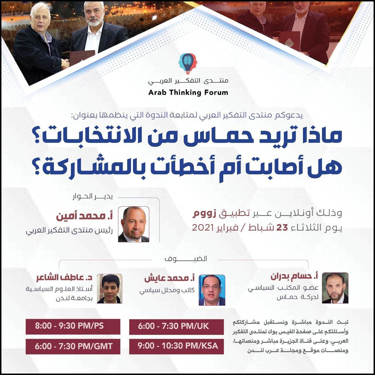 منتدى التفكير العربي: ماذا تريد حماس من الانتخابات الفلسطينية؟
